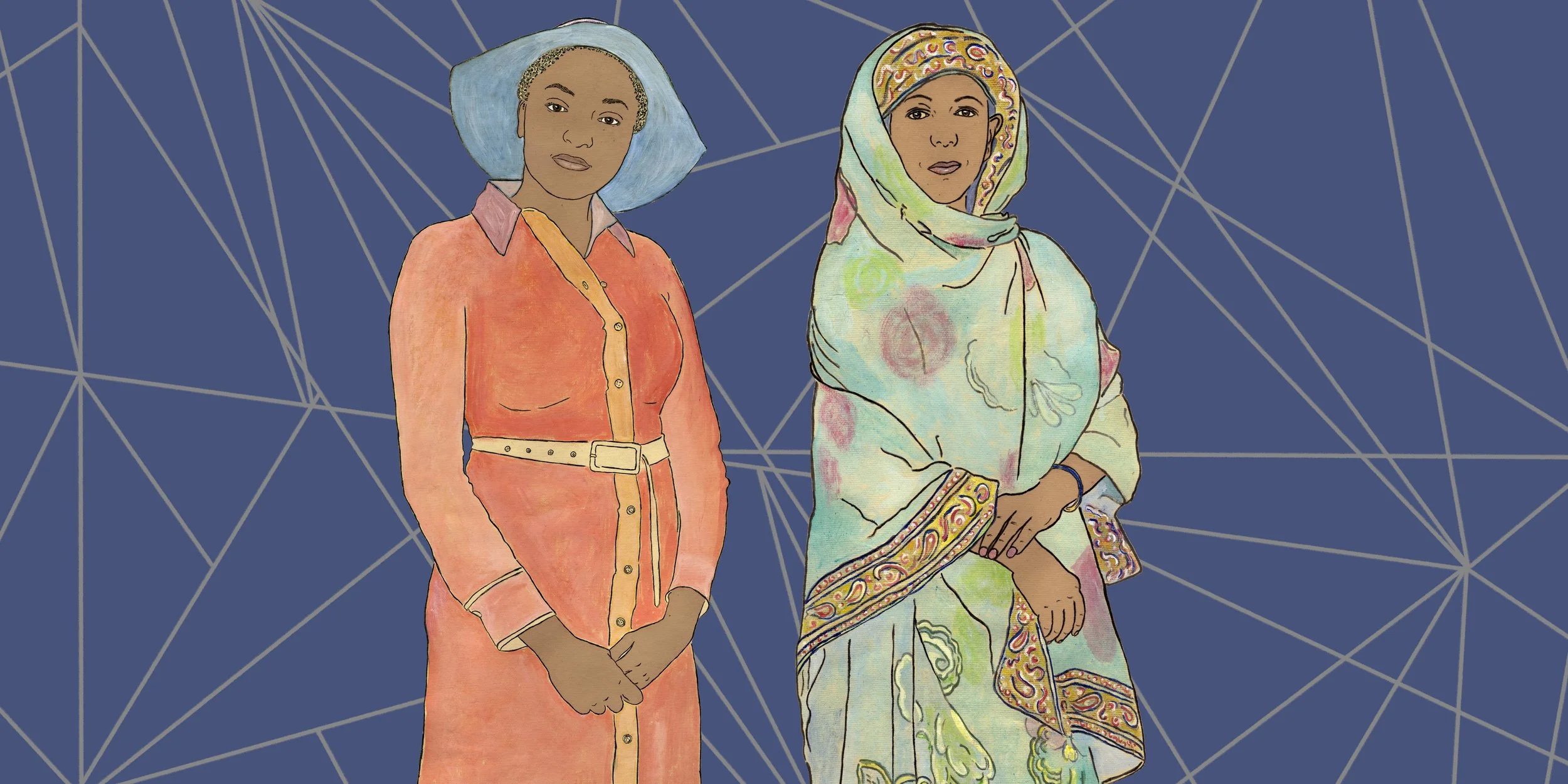 Design for a 6-foot x 12-foot porcelain steel panel for the downtown Redmond Link Light Rail Station. Pictured here are two members of the organization Ethiopian Community in Seattle.