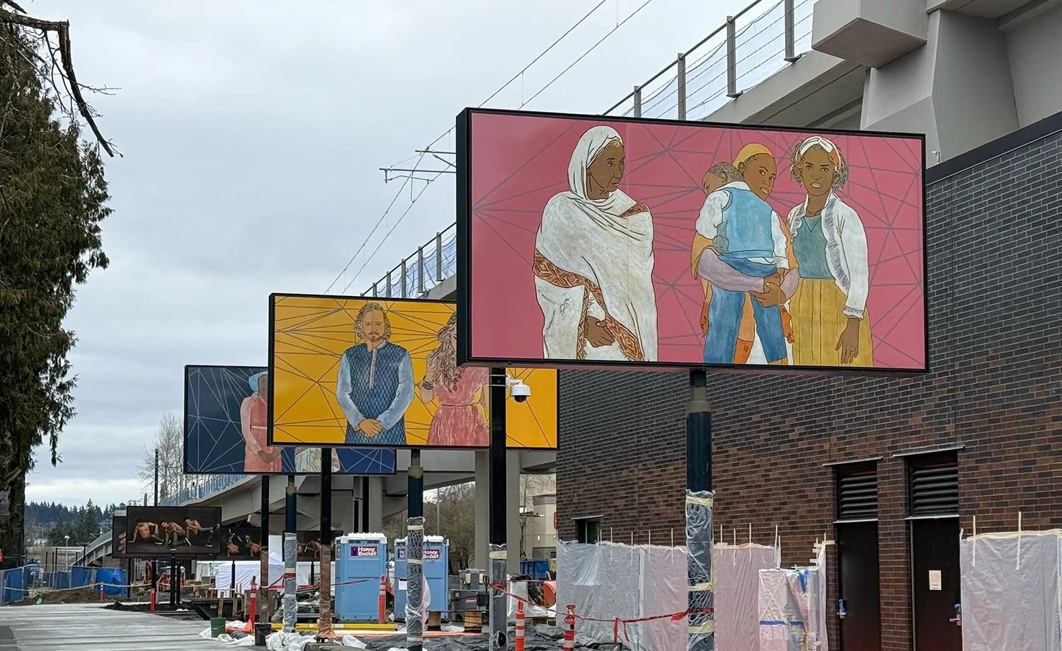 Opening day, May 10, 2025, of the Downtown Redmond Link Light Rail Station. My installation is titled We Are All Immigrants. It is five 6’ x 12’ porcelain on steel panels.